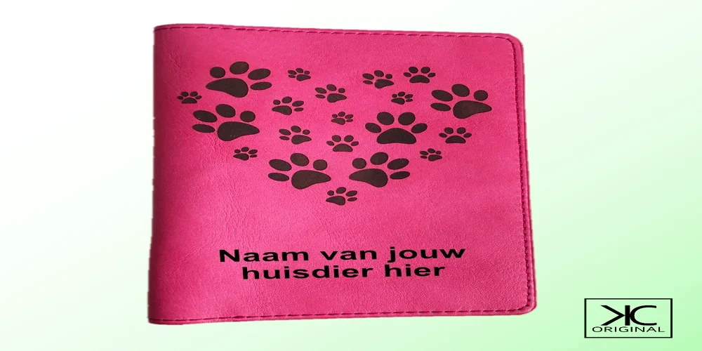 Het hoesje kan bovendien worden gepersonaliseerd met de naam van het huisdier, stijlvol met de laser in het leer gegraveerd. Zo is het inentingsboekje niet alleen netjes opgeborgen, maar ook echt uniek.