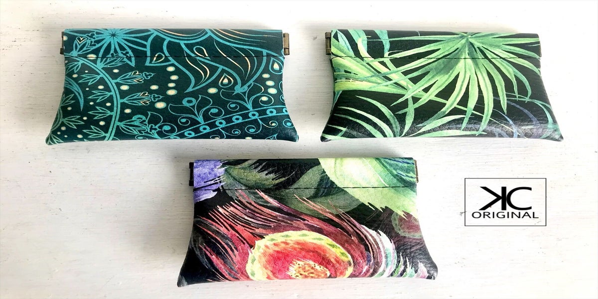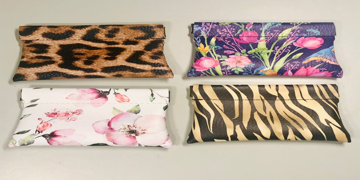 De etuitjes zijn gemaakt van kunstleer met vrolijke printjes. Van elk printje is er maar één exemplaar, dus wees er snel bij: op = op!