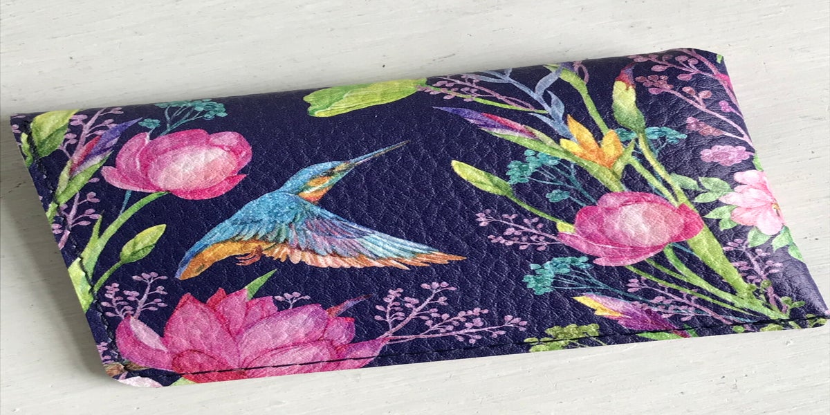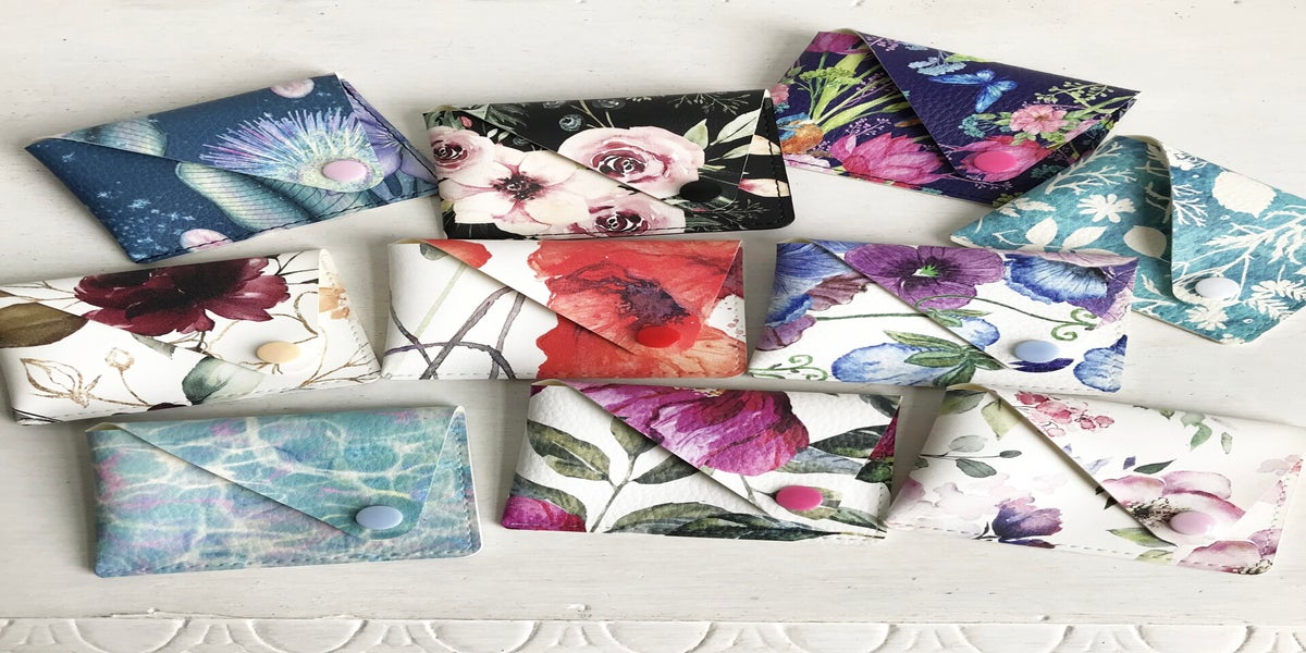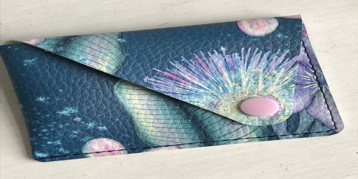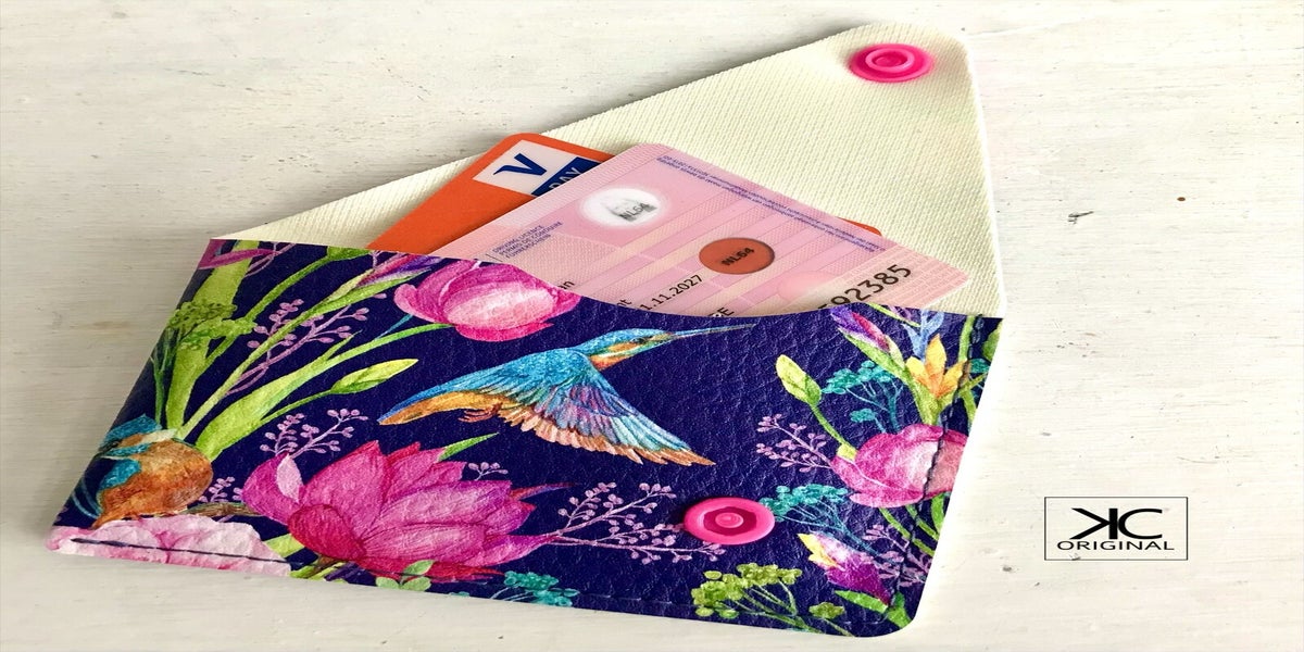 Deze mapjes zijn gemaakt van kunstleer in allerlei vrolijke en bijzondere printjes. Ieder exemplaar is anders en uniek – zo heb je altijd een mapje dat bij jou past. Het flapje sluit met een drukker, zodat je spulletjes veilig opgeborgen zijn.