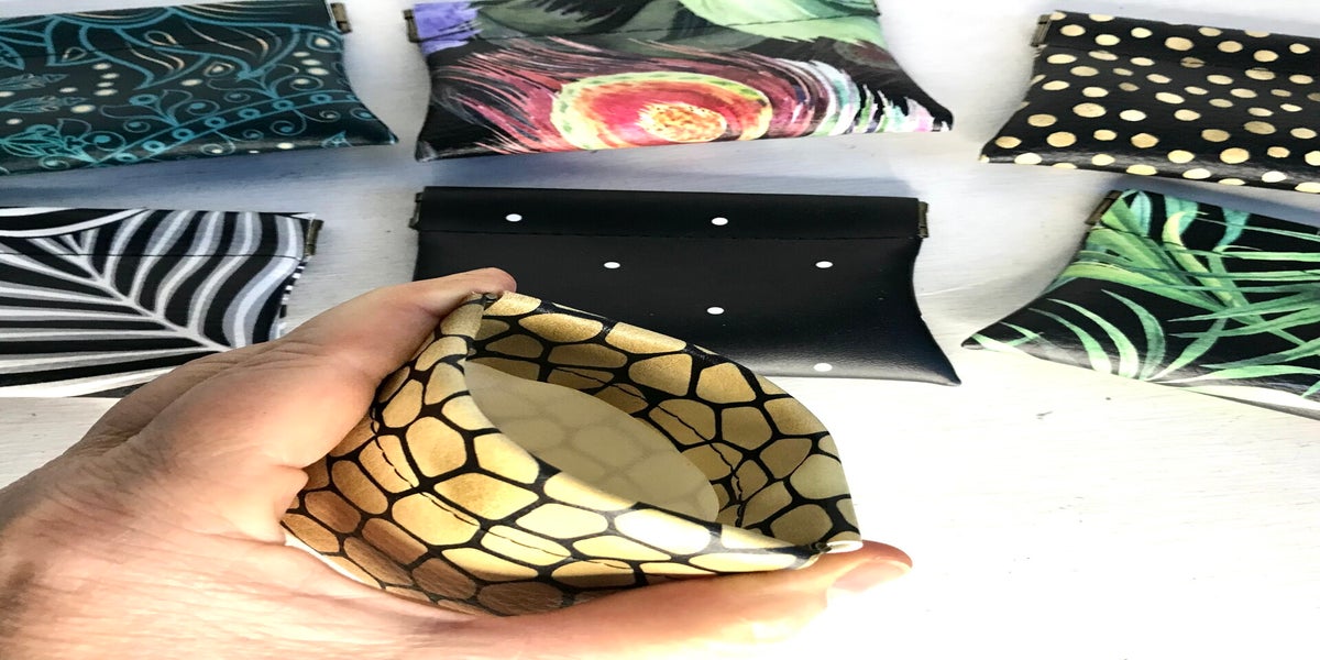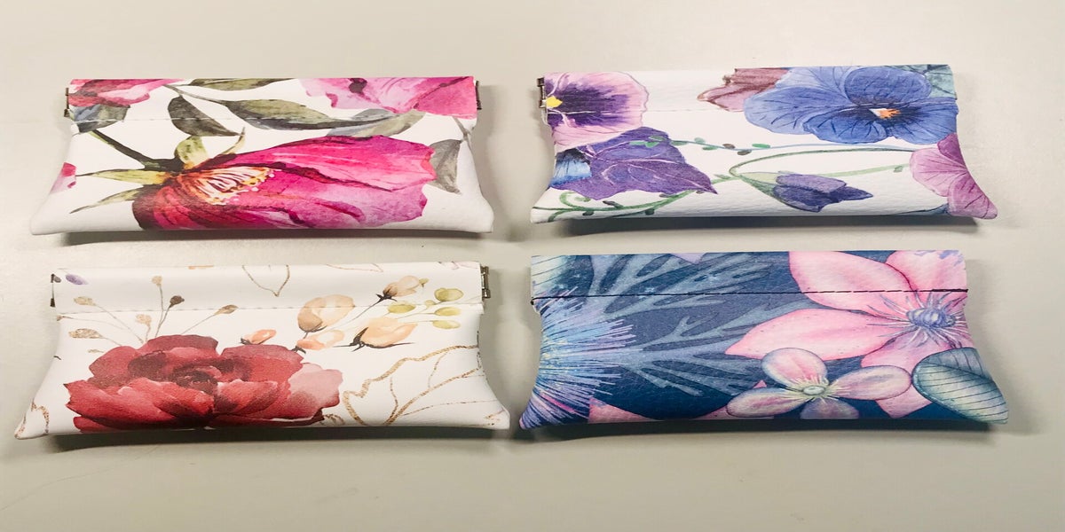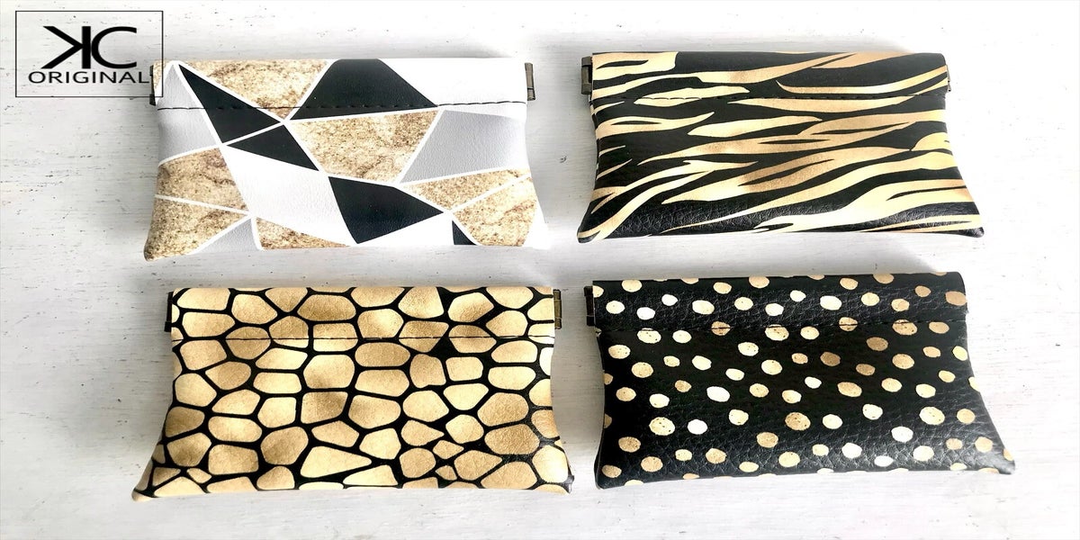 De etuitjes zijn gemaakt van kunstleer met vrolijke printjes. Van elk printje is er maar één exemplaar, dus wees er snel bij: op = op!