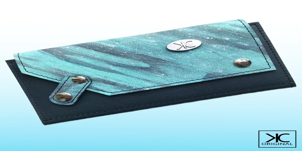 Net als zijn familieleden heeft de portemonnee de kenmerkende schuine flap en een handig ritsvak op de achterkant. De flap is ideaal om een bijzonder stukje leer in te verwerken, waardoor elke JeroniMoney uniek wordt.