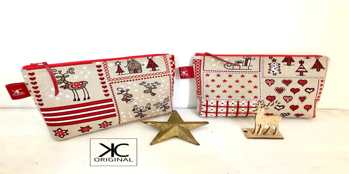 Deze etuis met kerst stof zijn perfect als cadeautje voor onder de boom. Doe er nog een kleinigheidje in, pak het in en je bent helemaal klaar.