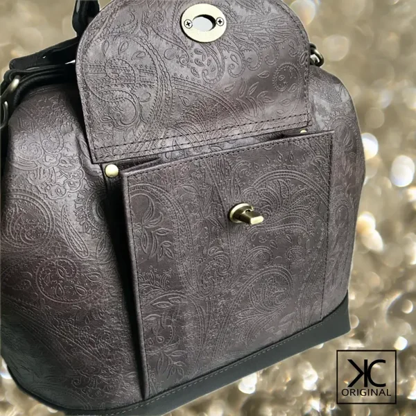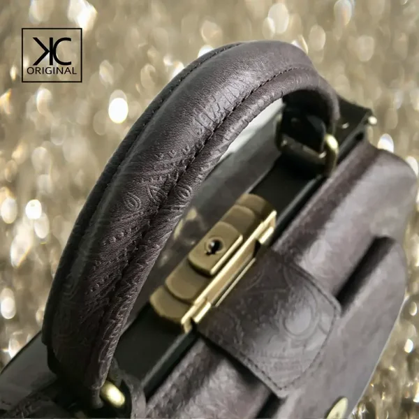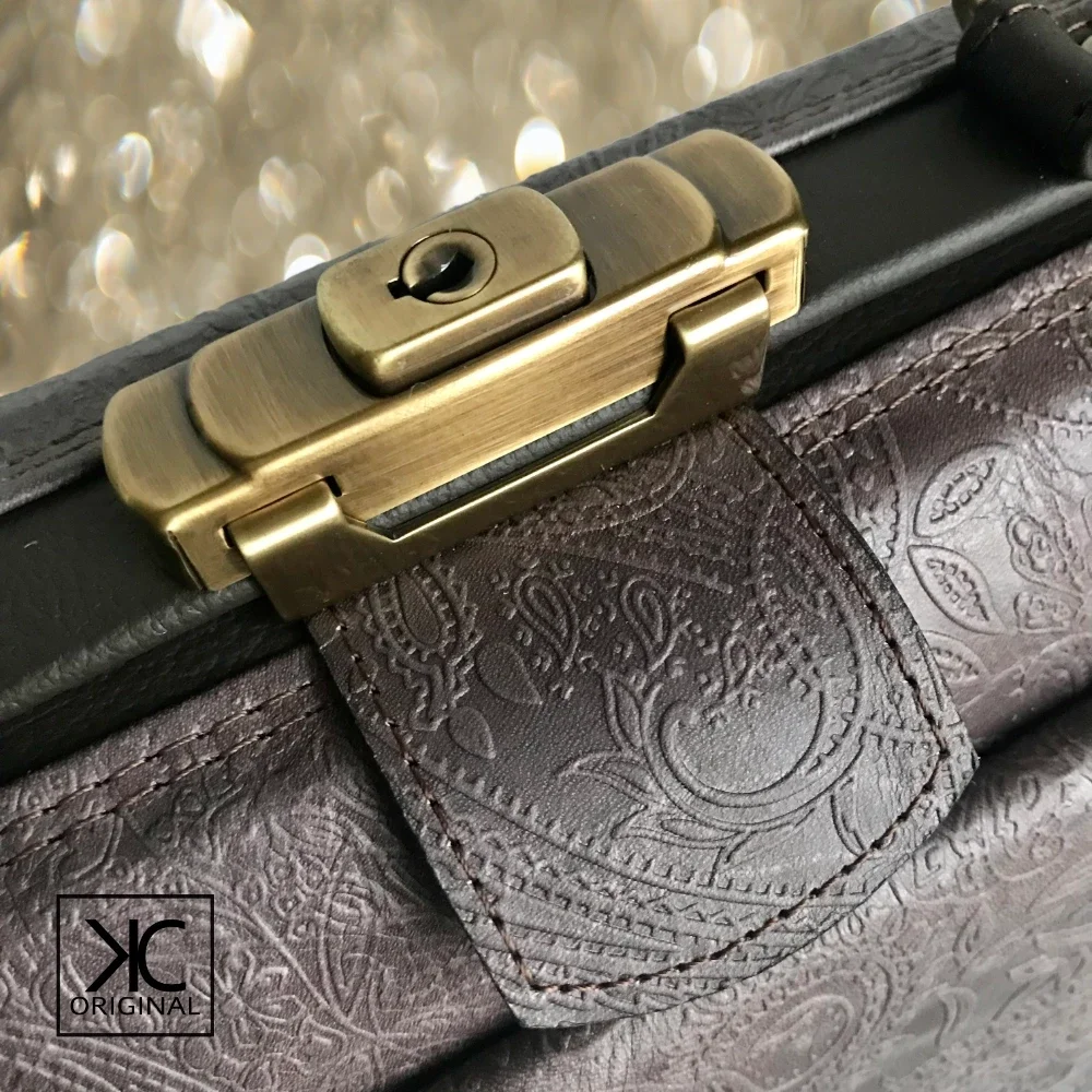 Dokterstas in donkerbruin leer met paisly motief + bijpassende portemonnee.