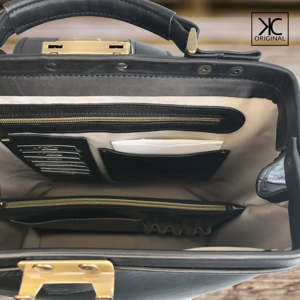 Deze unieke dokterstas rugzak combineert klassieke elegantie met modern gebruiksgemak. Gemaakt van hoogwaardig zwart kalfsleer, straalt de tas luxe en duurzaamheid uit – een echte investering voor het leven.