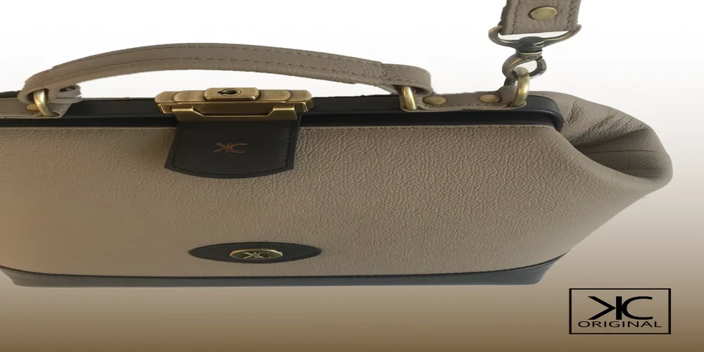 Dokterstas - taupe en zwart leer