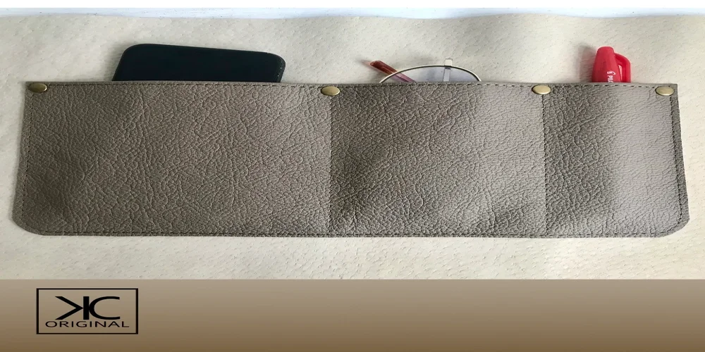Op de achterkant van de tas zit een ritsvak. De tas sluit bovenaan door de beugels samen te klappen en het slot dicht te drukken. Het slot kan ook echt op slot met het bijbehorende sleuteltje dat verstopt zit in de tashanger. Binnenin de tas zitten diverse (rits)vakken voor organisatie van je spullen. De voering is gemaakt van varkensleer.