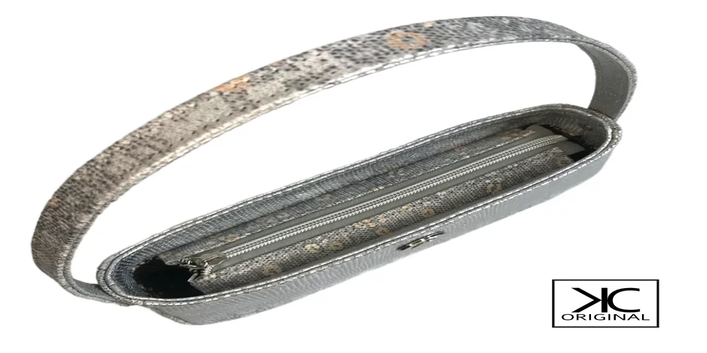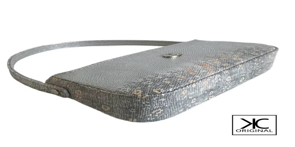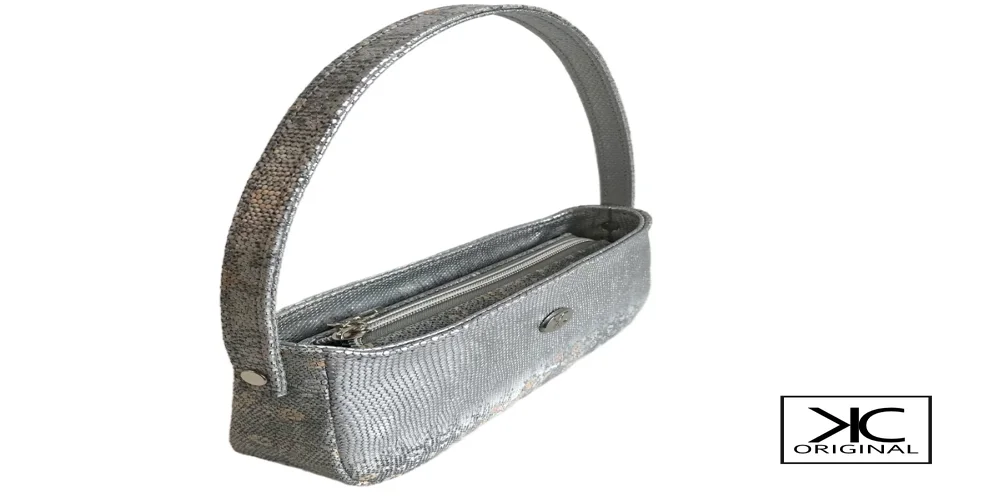 Een Dinner Date tasje in zilverig leer! Het leer heeft reliëf en een mooie zachte glans die schittert als het licht erop valt.