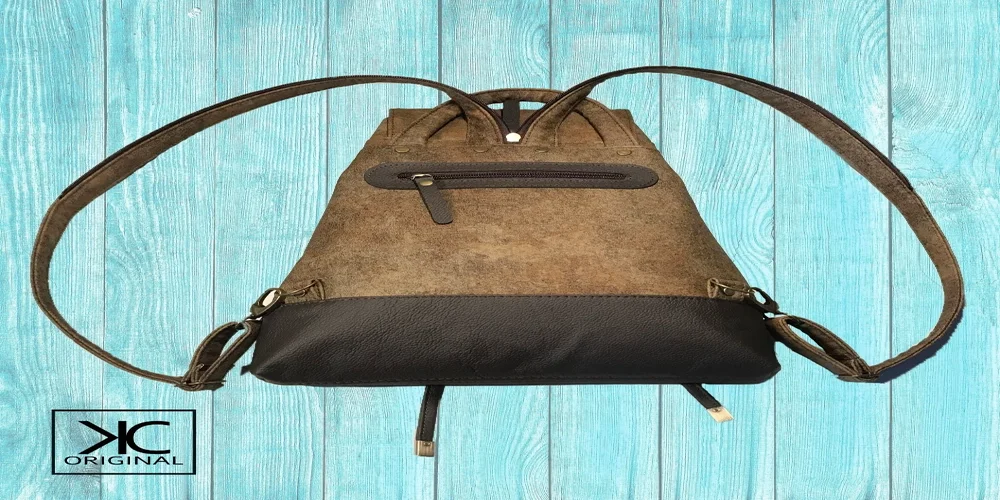 De rugzak is lekker plat en heeft een mooie slanke vorm doordat de bovenkant in plooien is samen gevouwen. Op de achterkant zit een ritsvak. Handig voor je telefoon. En veilig, want het ritsvak zit tegen je lijf aan. Daar kun je echt niet zomaar bij als vreemde.