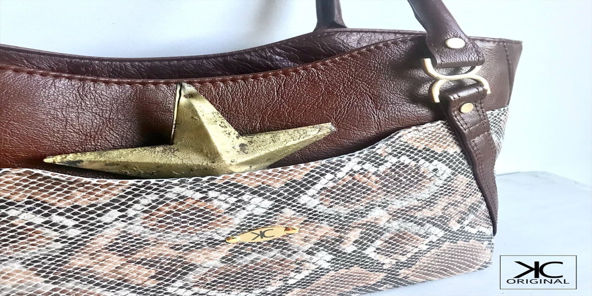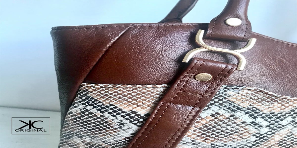 De Hiraeth is gemaakt van luxe leer met een prachtige slangenprint in warme bruintinten. Achter de voor- en achterpanelen vind je handige vakken, perfect voor spullen die je snel wilt pakken.