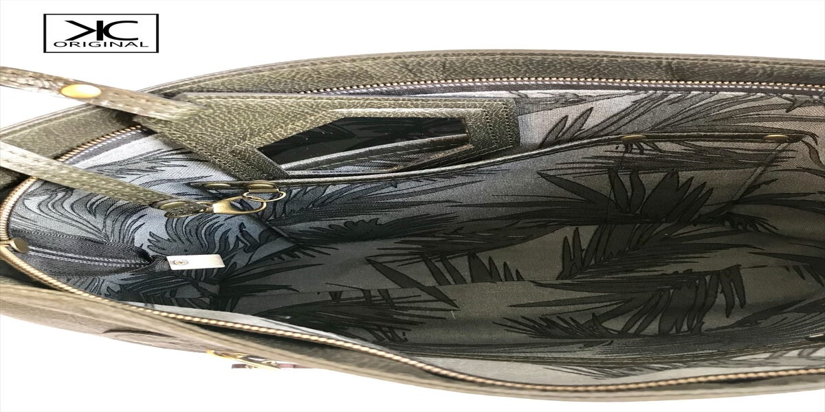 - bijpassende voering met bladerenmotief in grijsgroene tinten