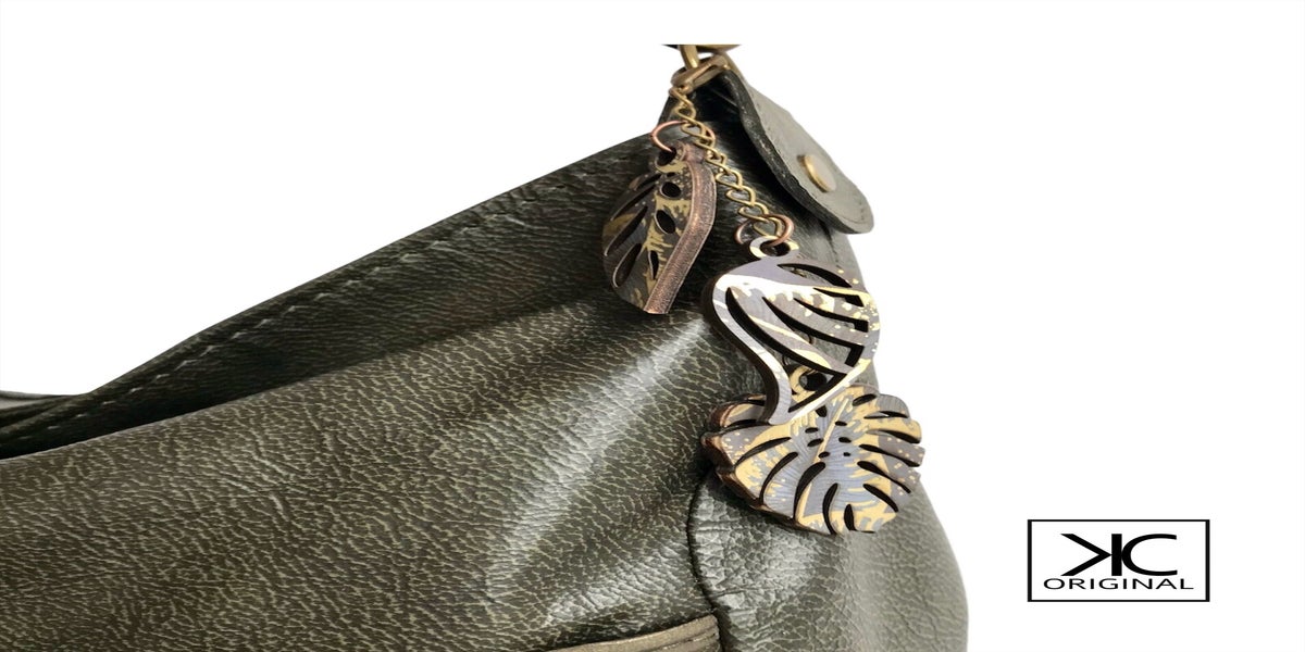 - het voorvak is van hetzelfde leer als de tas, maar er is met de laser een bladerenmotief in gegraveerd