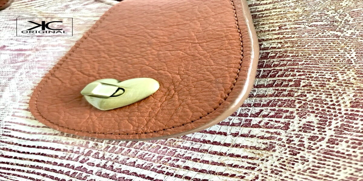 De tas heeft een prachtige hartvormige belijning, met een hartvormige sluiting in bronskleur op de flap als verfijnd detail. Chique X-vormige bronskleurige connectors met “rolled handles” zorgen voor comfortabel draaggemak, of je de tas nu aan de elleboog of over de schouder draagt.