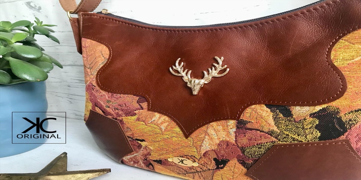 De body van deze Yenna Medium is gemaakt van een mooie stevige gobelinsof met herfstbladeren. De accenten zijn gemaakt van kastanjebruin leer. Op de voorzijde van de tas is de blikvanger het goudkleurige hertenhoofd. Het beslag is (uiteraard) ook goudkleurig. De tas heeft op de achterzijde een ritsvak. Handig voor je telefoon, zodat je er snel bij kan. Onderop heeft deze Yenna dopjes, zodat je tas niet zo snel vies wordt als je hem op de grond zet. Bovenaan sluit de tas met een rits. Deze Yenna is gevoerd met een bijpassende voeringstof. In de voering is zowel een ritsvak als een insteekvak gemaakt, zodat je je spullen goed kan organiseren. De schouderband heeft een weefdetail en is verstelbaar, zodat je kan kiezen of je hem over je schouder draagt of als cross body.