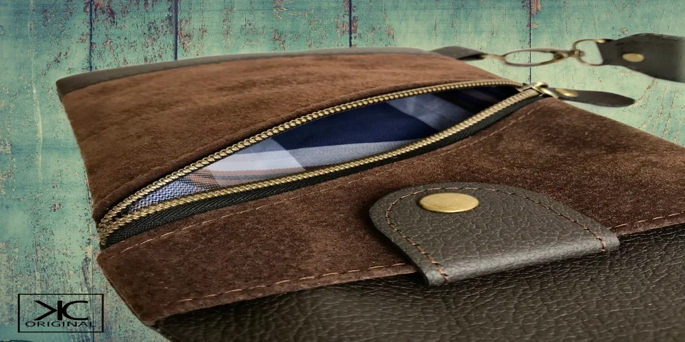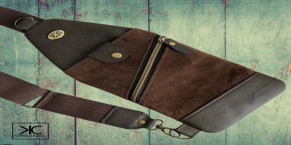 Deze Mini Traveler is gemaakt van twee soorten bruin leer: glad rundleer in heel donkerbruin (bijna zwart) en zacht suède varkensleer in chocolade bruin op de voorkant. accenten op de voorkant. Voor de voeringstof is gekozen voor een stoere uitstof. De band is extra breed, dat draagt fijn. Het bronskleurige beslag maakt het helemaal af. Een stoere Mini Traveller voor stoere mannen.